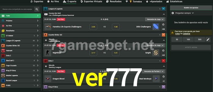 A aposta ver777 oferece aos jogadores a experiência mais conveniente de apostas em eSports!